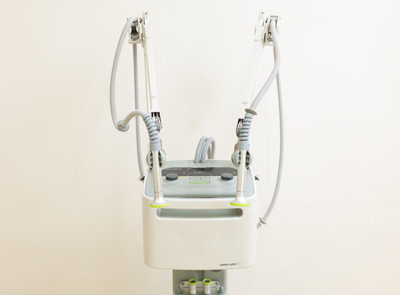 身体の深部まで達する近赤外線で血流改善作用のほか、炎症を抑え症状を緩和します。外傷後の痛み以外にも、ストレスなどで緊張している神経に直接作用して平常な状態に戻す効果があります。